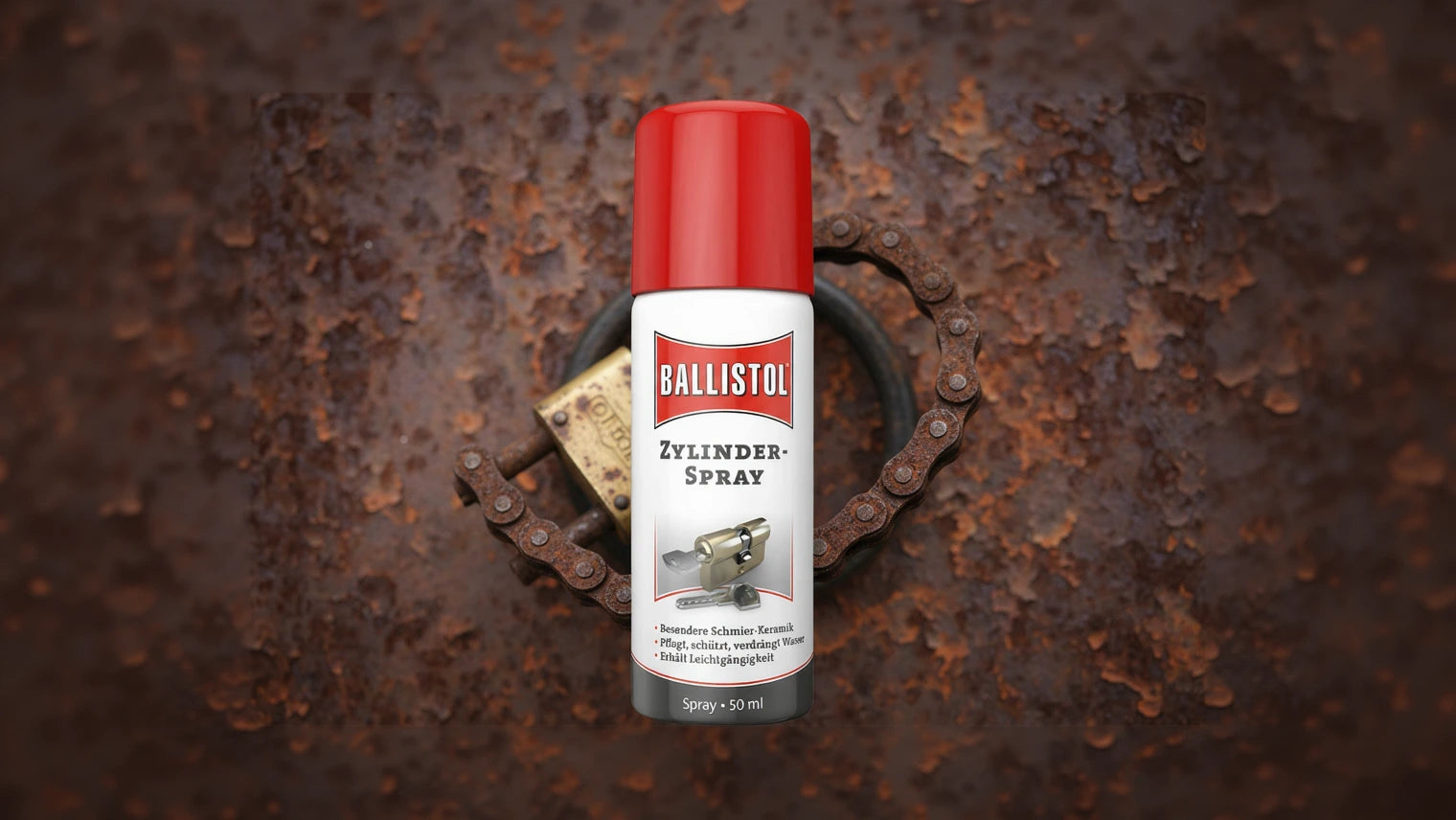 The ceramic particles contained in the lubricant provide optimal lubrication for the mechanism, allowing it to run smoothly again. Spraying it onto the surface achieves even the tightest fit, eliminating squeaking and creaking. It displaces moisture and thus prevents icing. This preserves functionality and extends the service life. Protects against rust and dissolves existing rust.