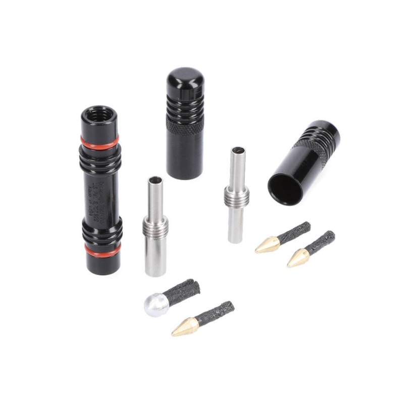 Zur Reparatur ziehst du einfach eine Kappe ab, um entweder einen Stopfen in Standardgröße oder den Megaplug aus Aluminium für mega-große Reifenpannen einzusetzen. Wenn du mehr als einen Stopfen benötigst, drehst du die Twin Tube™ einfach  um und kannst so weitere Stopfen verwenden!