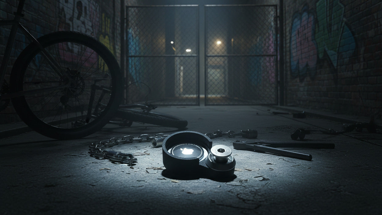Eine einfache und unauffällige Möglichkeit zur Befestigung eines Apple AirTag unter deinem Omnium Cargo oder Mini-Max. Nützlich als zusätzliche Sicherheitsmaßnahme im Falle eines Diebstahls oder einfach nur, um ein Auge auf dein Fahrrad zu haben. Strapazierfähiger Kunststoff, rostfreie Halterungen, nur 26 g.